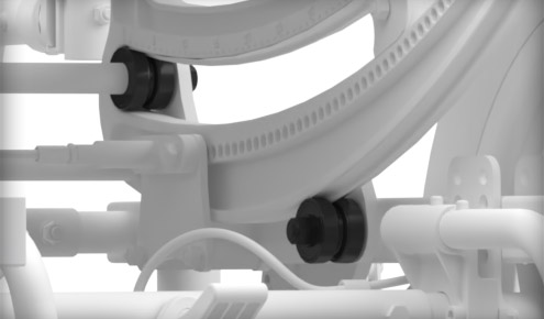 W przeciwieństwie do innych wózków z funkcją odchylenia siedziska, które korzystają z plastikowych rolek czy tulei, CR45 wyposażony jest w 8 precyzyjnych, uszczelnionych łożysk najwyższej jakości. Dzięki temu mechanizm jest niezwykle trwały, niemal bezobsługowy, a każde łożysko objęte jest dożywotnią gwarancją – bez dodatkowych kosztów.