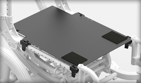 Solidna, aluminiowa płyta siedziska zapewnia większą sztywność. Wyposażona jest w cztery standardowe punkty mocowania taśm AB, dzięki czemu jest uniwersalnie kompatybilna z większością dostępnych na rynku poduszek.