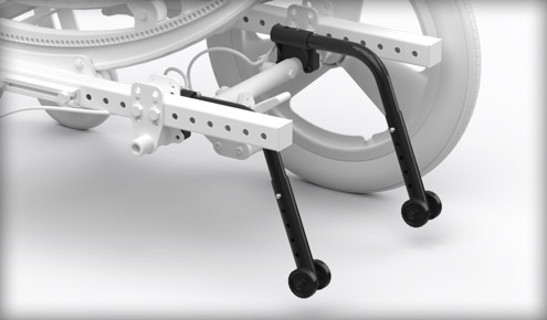 Niezależnie od konfiguracji kół, te wąsy antywywrotne można ustawić w sposób zapewniający bezpieczeństwo, bez przeszkadzania opiekunowi. Montowane są bezpośrednio przy osi, co gwarantuje stabilność i funkcjonalność w każdej sytuacji