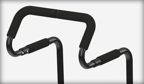 Uchwyt montowany do rury oparcia, który zapewnia bardziej ergonomiczną i wygodną pozycję dłoni podczas pchania wózka.