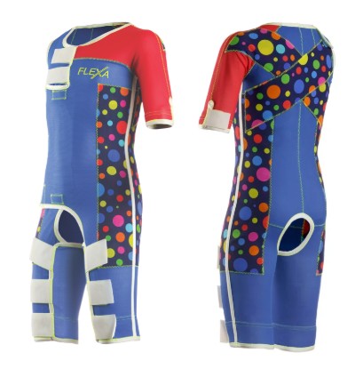 W newralgicznych miejscach – jak miednica, tułów czy stawy – zastosowano dodatkowe warstwy (305 g/m²) wykonane z tworzywa sztucznego, metalu lub formowalnego materiału ErkoFlex. Dzięki temu Flexa zapewnia stabilność, wspiera prawidłowe ustawienie ciała, a jednocześnie nie krępuje naturalnych ruchów pacjenta.