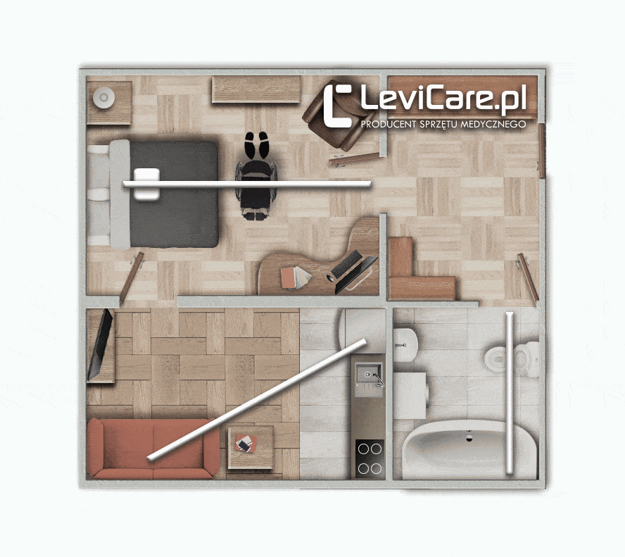 Podnośnik sufitowy Heymer Uno Fahrmotor wyposażony jest w elektryczny system posuwu, który pozwala użytkownikowi na samodzielne przemieszczanie się wzdłuż zamontowanych szyn sufitowych. Dzięki wygodnemu uchwytowi można łatwo przenosić podnośnik między różnymi torami, co umożliwia swobodny transfer w kilku pomieszczeniach bez konieczności przesadzania podopiecznego. W zestawie znajduje się uniwersalna kamizelka LeviKam.